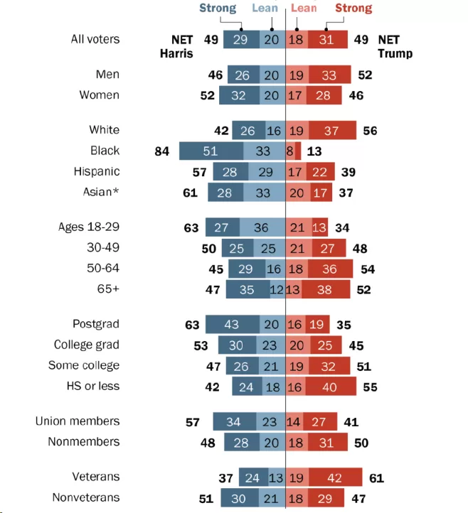 - Asian voters: Harris leads 61% to 37%